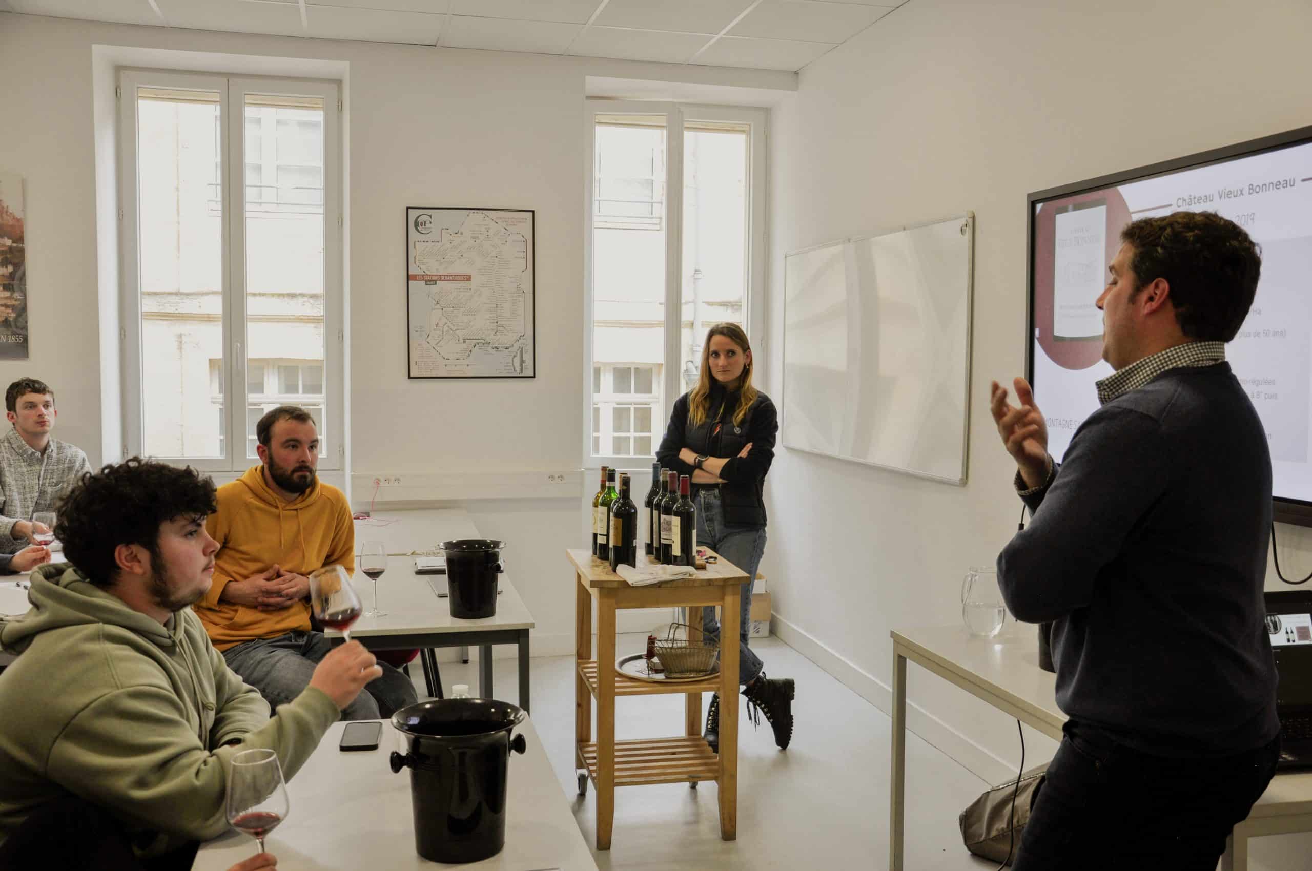 Nos Conseillers en Sommellerie, véritables ambassadeurs de l’excellence dans le monde du vin, ont récemment eu le privilège d’explorer les subtilités des appellations satellites de Saint-Émilion. À travers une masterclass interactive et une dégustation immersive, ils ont pu approfondir leurs connaissances et affiner leurs palais. Cet événement, animé par les Saint-Élites au sein de notre établissement, témoigne de notre engagement à offrir à nos étudiants des expériences uniques et enrichissantes, les préparant ainsi à exceller dans leur future carrière de passionnés de vin.